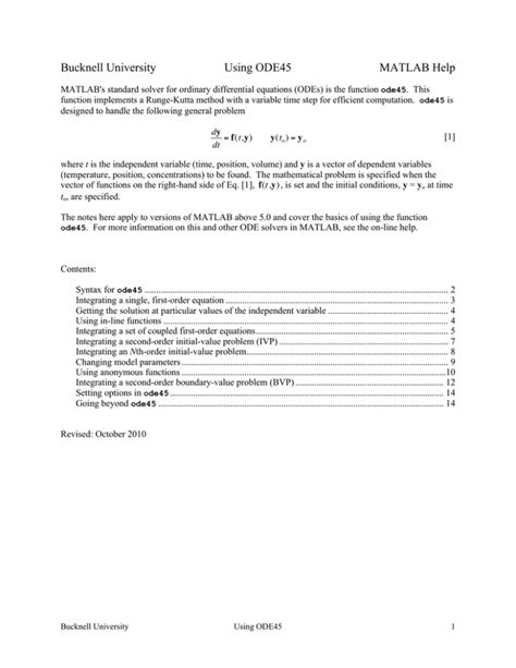 Online PDF bucknell-university-using-ode45-matlab-help Doc BookBoon